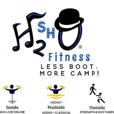 The name H2shO™️ is a portmanteau of the chemical formula of water H2O💦+Broadway show 🎭. It all began as a shallow water, vertical fitness exercise class intended to be "less bootcamp" and more "CAMP".